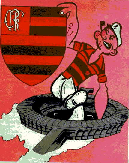 A ave aparece em campo com uma bandeira do clube no pescoço como parte das provocações das torcidas adversárias, pouco antes do início de Flamengo x Botafogo, onde o Flamengo vence, quebrando um tabu de vitórias contra o Botafogo que durava desde 29 de julho de 1967 (9 jogos). O mascote foi estilizado pelo cartunista Henfil, do Jornal do Sports. A troca foi realizada principalmente pelo Popeye ser um herói americano, porém nunca deixou de ser lembrado.